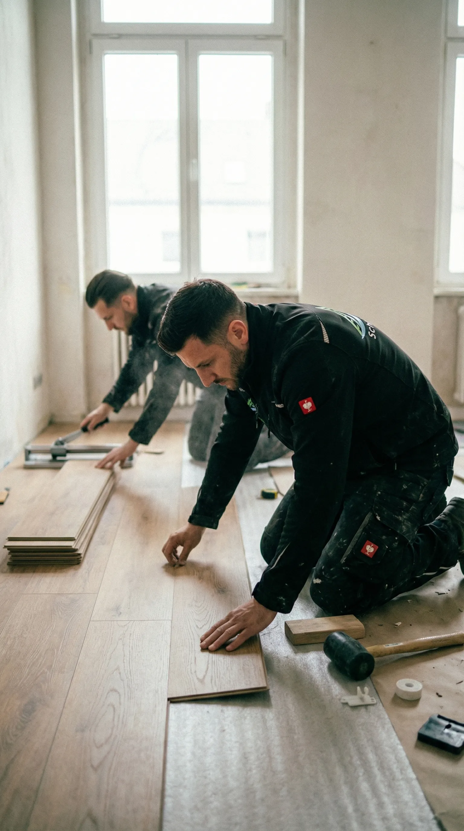 Je nach Raumgröße und Material dauert die Verlegung meist 1–3 Tage. Wir stimmen den Zeitplan individuell mit Ihnen ab.